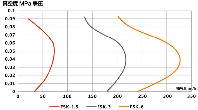 適應(yīng)于90~360m3/h的低抽氣量區(qū)間,極限真空度較低,可增加電機功率作為壓縮機使用。